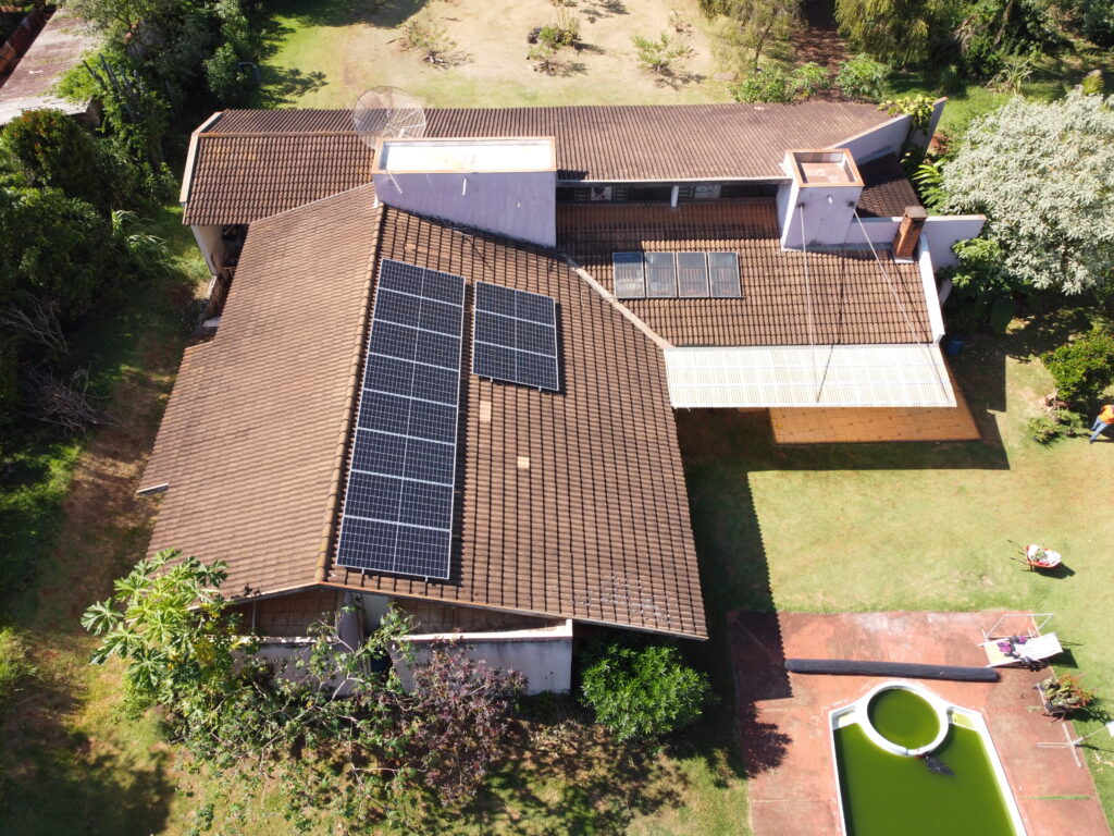 A energia gerada é convertida por um inversor Sungrow de 6 kW, dimensionado para garantir eficiência, segurança e estabilidade na operação do sistema.